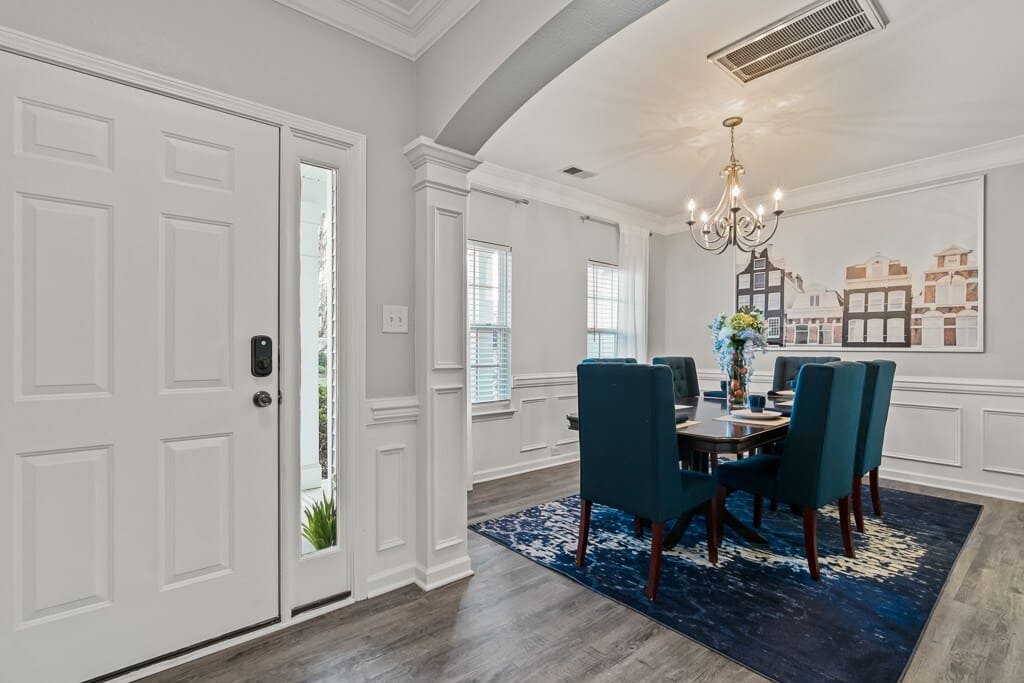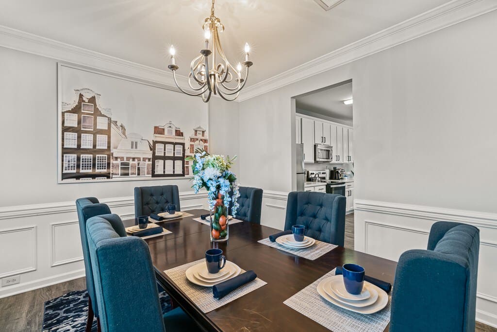 Our Home has a open floor plan concept that include an elegant kitchen, formal dining area with eat in buffet and dining table.